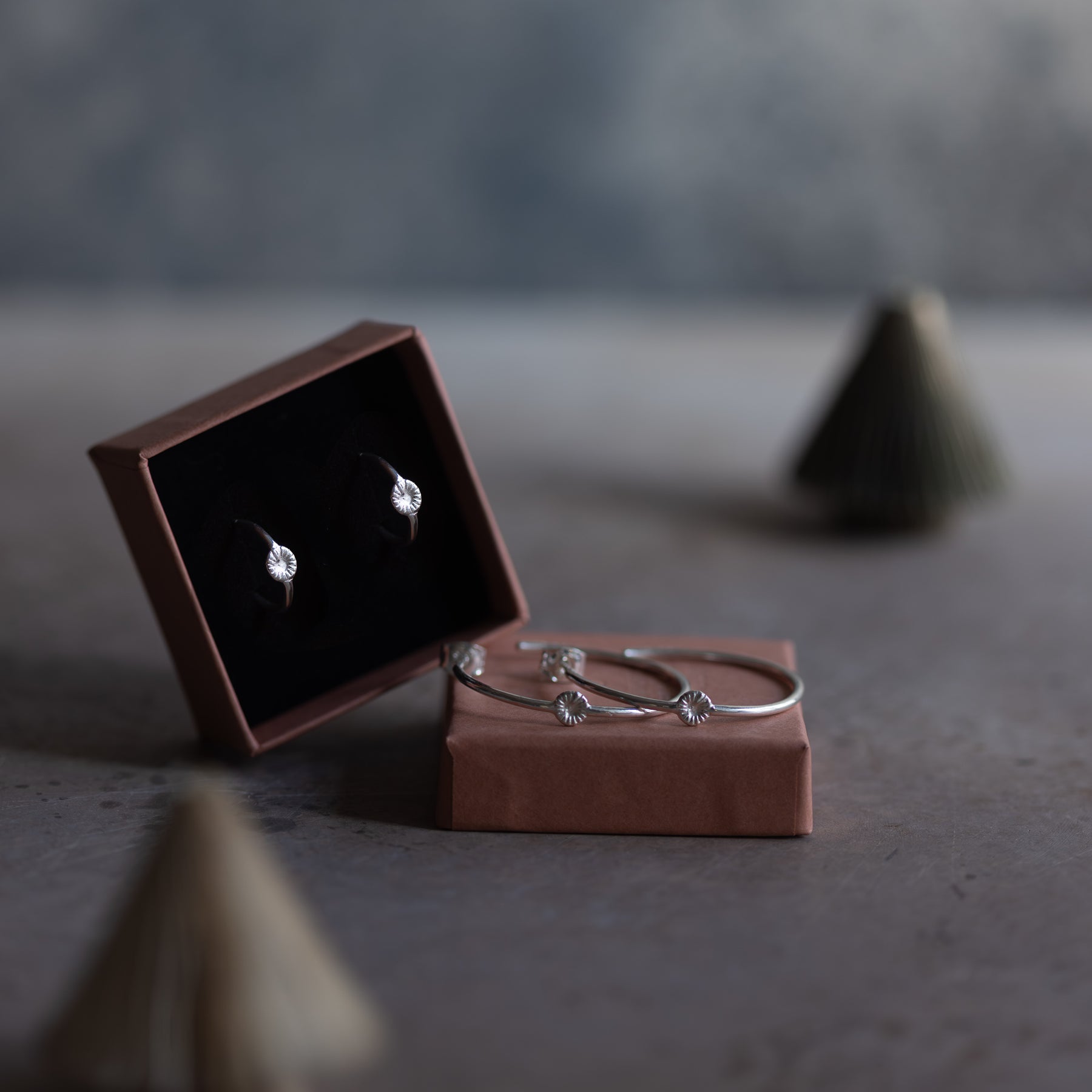 Julkit - Knappkorall örhängen - Creoler (Små & Stora) - Silver